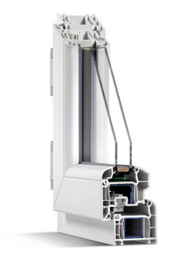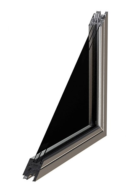 Profilati spessore 65 mm per i telai e 75 mm per le ante complanari tra di loro esternamente.